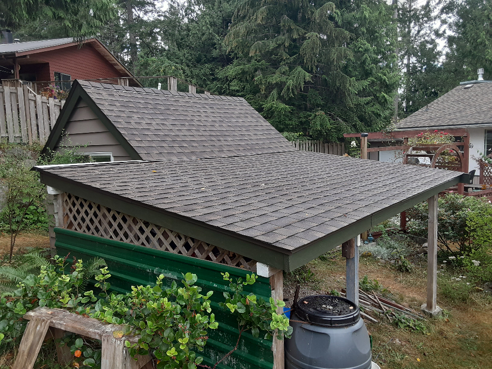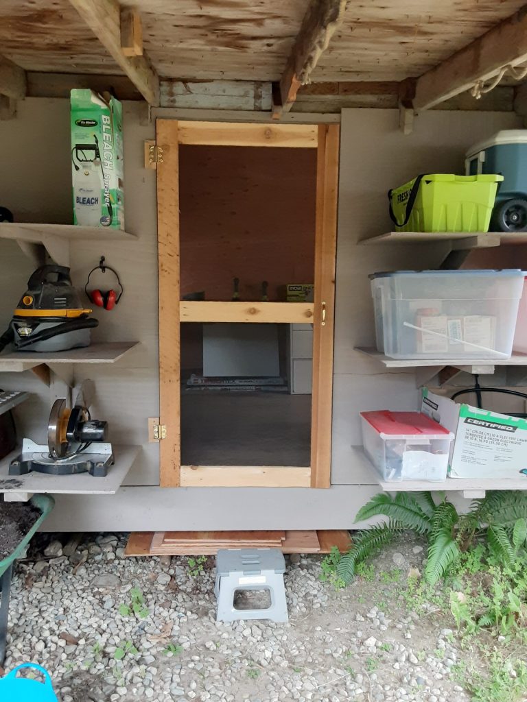 The custom screen door turned out well and was easy to make. Reroofing the shed took many weeks with working only in the mornings to avoid the sun and two trips to Home Depot in Vancouver to buy materials.