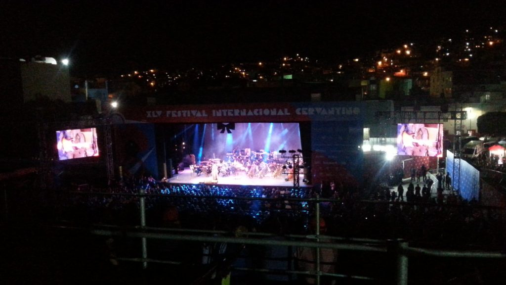 Last night marked the end of the Cervantino Festival for 2017. On stage was Eugenia León and the Orquesta Sinfónica Mexiquense. I arrived at 7pm to line up for the show at 8pm. The bleachers were filled by 7:30.