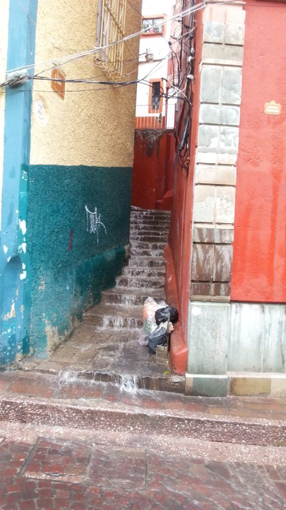 It is the end of the rainy season and we have experienced thunderstorms almost every night but fortunately the days are sunny. You can see in photo above, when it rains hard the water flows down the small walkways in torrents.