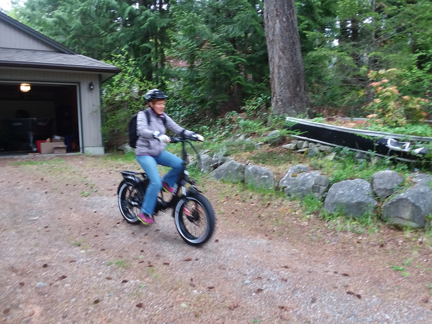AimeĆ© found herself a summer job working at John Henry’s Resort & Marina, which is located just down the hill in Garden Bay. Coming back is no problem with her ebike. It’s a full time position in housekeeping until the end of September, which is perfect as we plan to head back to Mexico in October. Hopefully it will be a great experience for her and it surely will help her english.