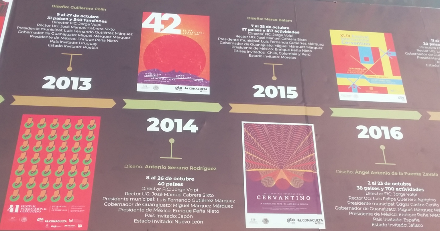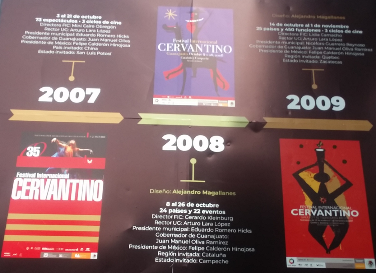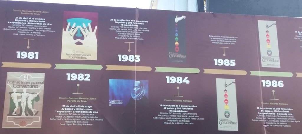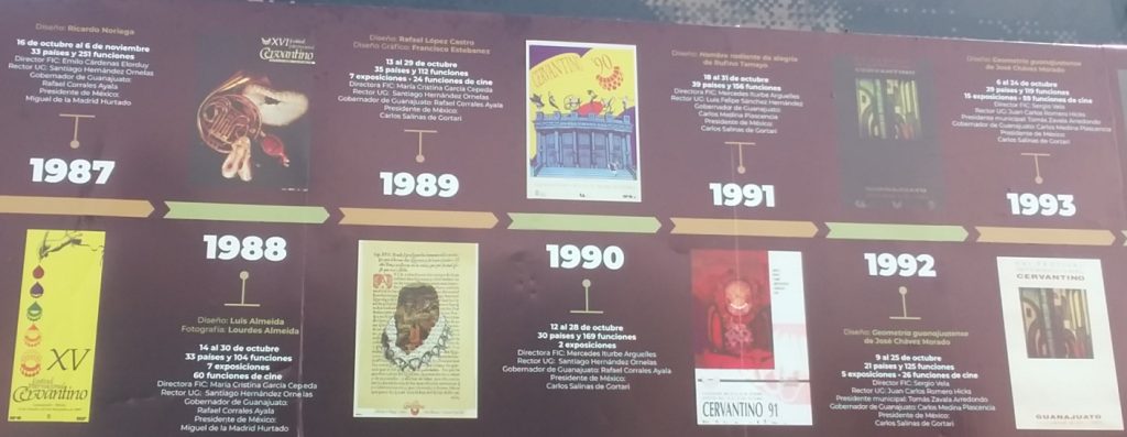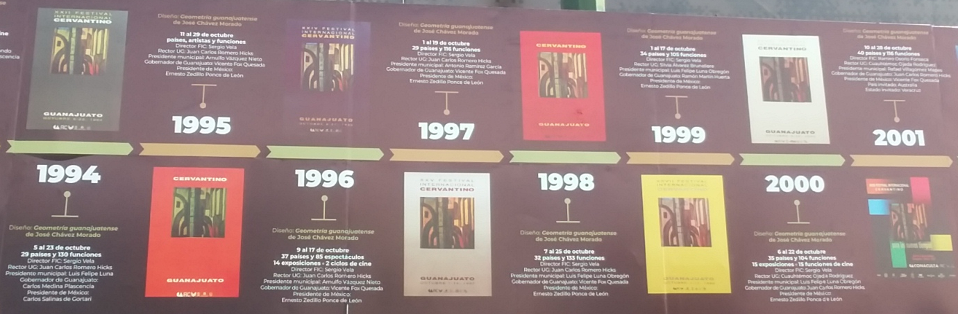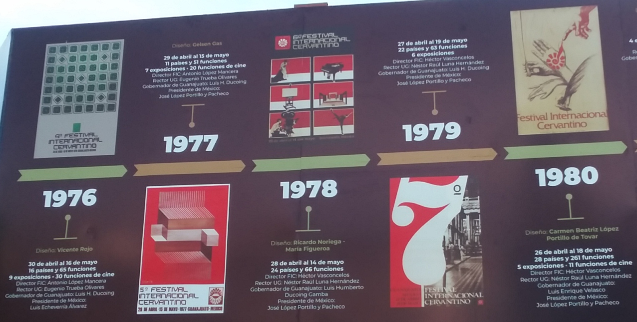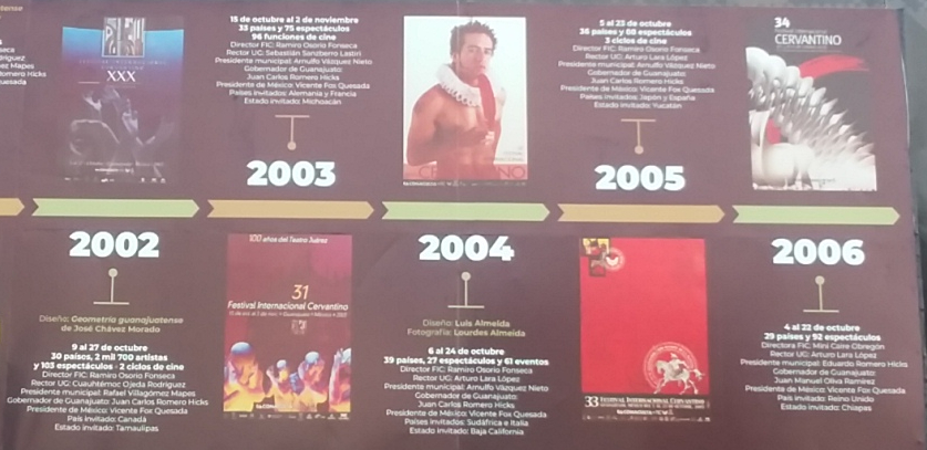 The photos below are of a display around La Alhondiga summarizing the history of the Cervantino Festival. Click on a photo below to expand in another tab.