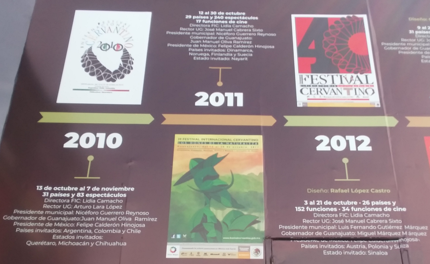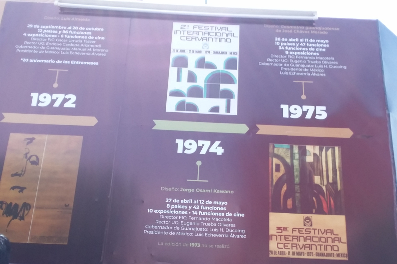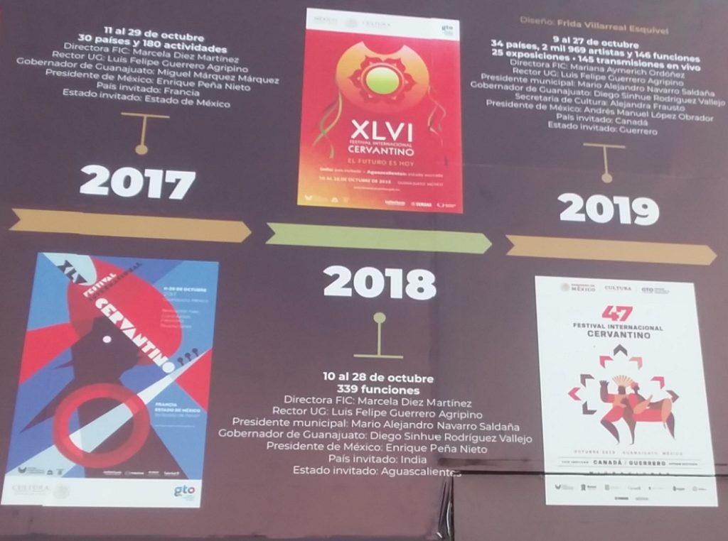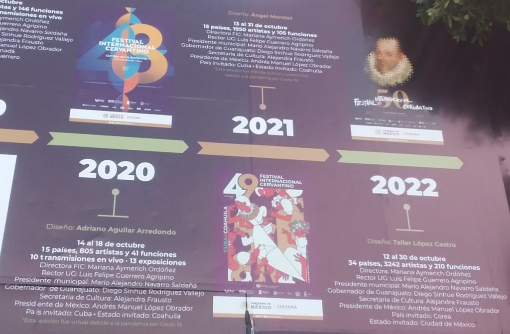 The photos below are of a display around La Alhondiga summarizing the history of the Cervantino Festival. Click on a photo below to expand in another tab.